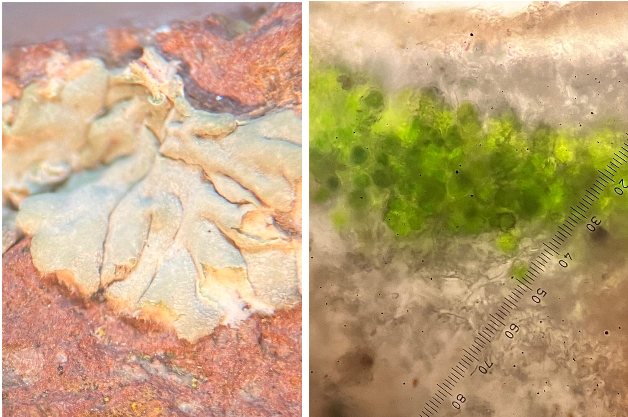 Quando si parla di licheni, questi vengono generalmente descritti come la simbiosi fra un fungo, detto micobionte, e un’alga, il fotobionte. Questa definizione, sebbene essenzialmente corretta, non illustra però esaustivamente l’organizzazione e la varietà della simbiosi lichenica. In alcune specie il fotobionte è infatti rappresentato da una popolazione di alghe verdi microscopiche, in altre di cianobatteri, batteri in grado di fare fotosintesi (Approfondimento nella STAZIONE 4). In altri casi ancora i partner possono essere tre, cioè il micobionte vive associato sia ad alghe verdi che a cianobatteri. Il quadro è poi reso ancora più complesso dall'ulteriore compresenza di colonie di batteri non fotosintetici e altri funghi. Pensiamo così ad un lichene come un piccolo ecosistema in cui tutti i partner hanno un ruolo funzionale. Semplificando potremmo però dire che il micobionte forma il corpo del lichene, detto tallo, e protegge il fotobionte - alga o cianobatterio - che ha invece il compito di dare nutrimento a tutti i partner producendo zuccheri con la fotosintesi.